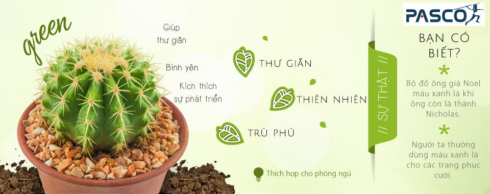 Màu xanh lá cây tạo cảm giác thăng bằng, thích hợp cho phòng hồi sức và phòng khách. Bên cạnh đó, màu lá cây có tác dụng làm tăng sự tập trung nên rất lý tưởng dùng cho các thư viện và phòng học.