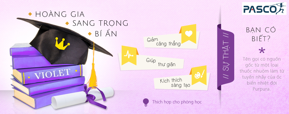 Màu tím thể hiện cá tính, mang hơi hướng của hoàng gia và sự sang trọng. Màu tím có tác dụng kích thích sự sống, gợi cảm, đam mê và lãng mạn. Người chọn màu tím thường tự tin, cái tôi lớn và đầy khát vọng tâm linh. Màu tím tạo cảm giác mát mẻ và thiêng liêng, thích hợp sử dụng trong phòng ngủ. Màu tím là màu ưa chuộng của các nghệ sĩ, nhà thiết kế hay các nhạc sĩ thường bởi đây là màu kích thích sự sáng tạo. Nghiên cứu cũng chỉ ra rằng khi bạn ngồi trong một căn phòng tràn ngập sắc tím, bạn sẽ dễ dàng đi bào những suy tư và mơ mộng hơn.